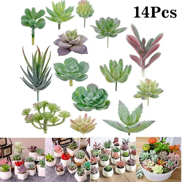 Yannee 14 Pcs Artificial Succulent Flocked Plant Fake Cactus Lotus Landscape Home Decor Walmart Com